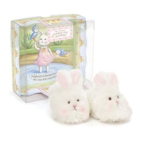 The adorable bunny slippers made with snuggly white cuddle fur. It features white knit lining and a sweet pink bunny nose. The slippers are machine wash cold and tumble dry NO heat. This fits babies between 0 to 6 months.